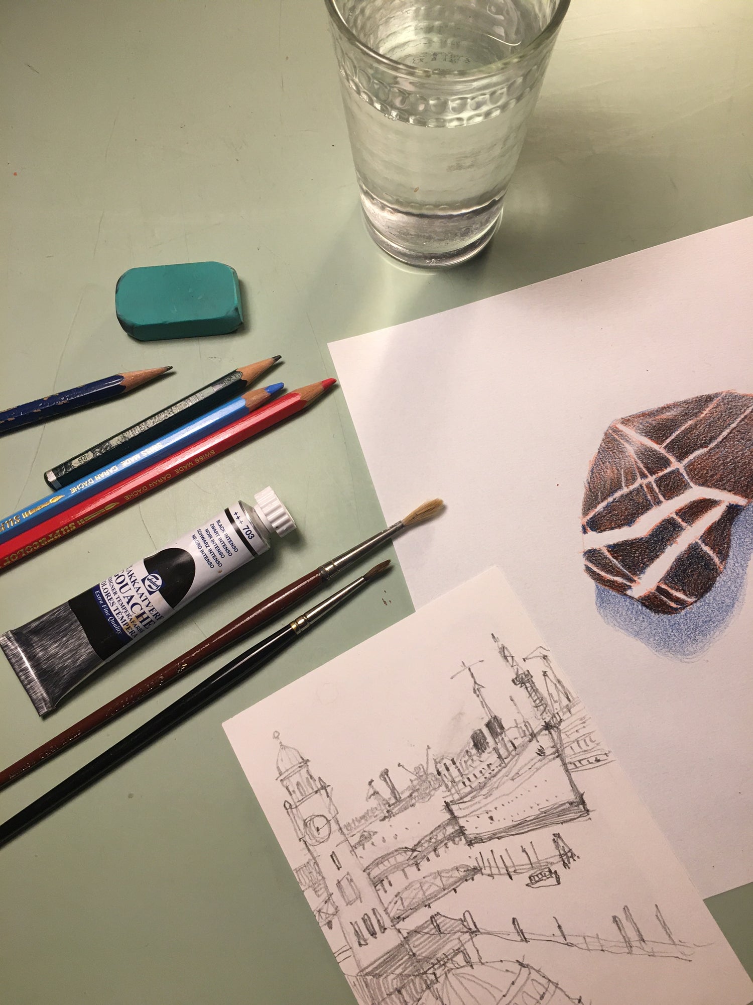 Zeichnen und Malen mit Stift und Pinsel. Skizzieren und kreieren von Bildkompositionen, schattieren, schraffieren und spielerisches experimentieren mit Mischtechniken.